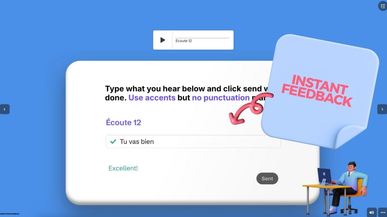 - Clear audio that can be played as many times as needed.